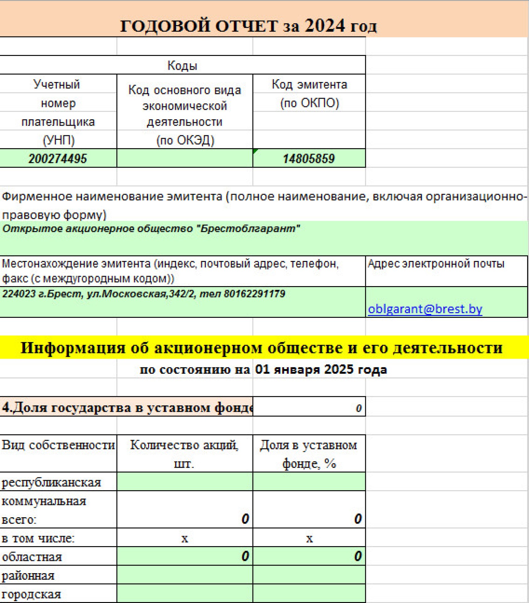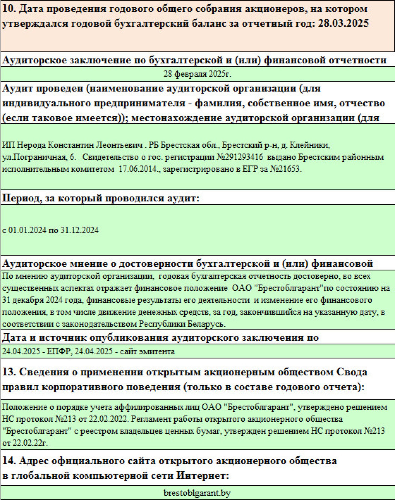 Аудиторское заключение по индивидуальной бухгалтерской отчетности открытого акционерного общества «Брестоблгарант» за период с 1 января по 31 декабря 2024 года